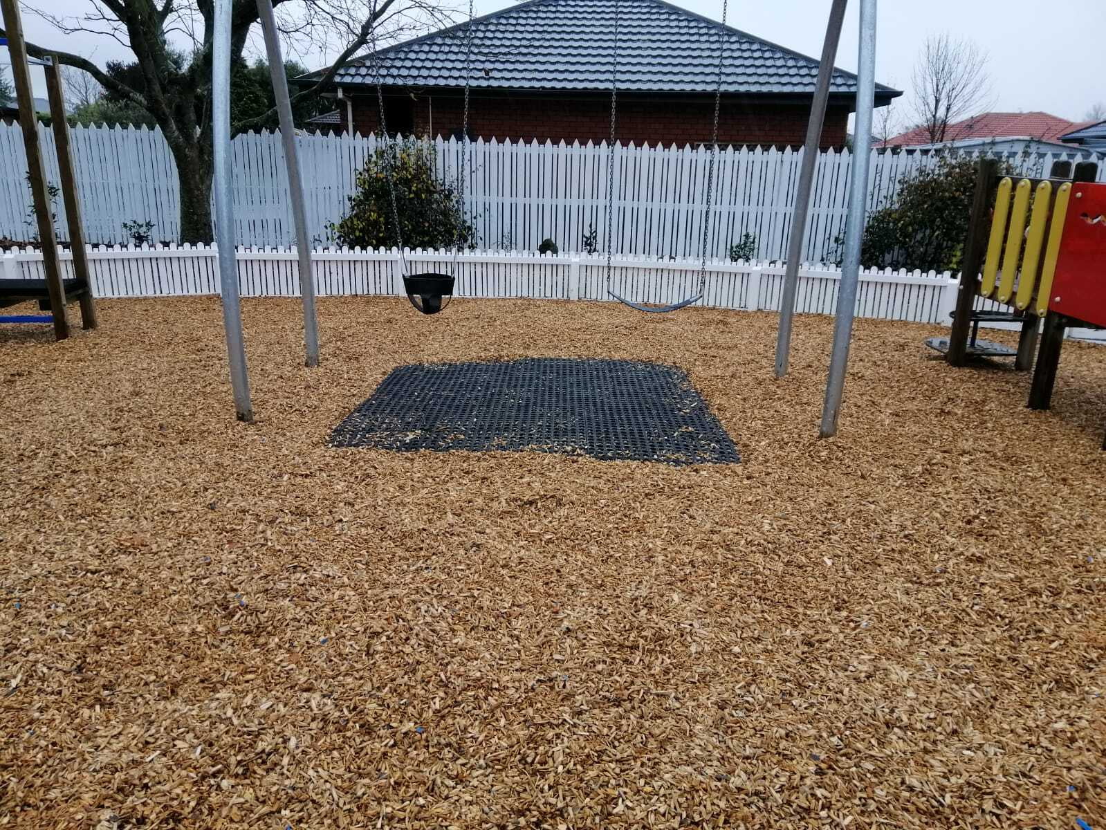Woodchip and sand surfacing solutions can be satisfactory at installation, but require consistent attention, particularly in high use areas.